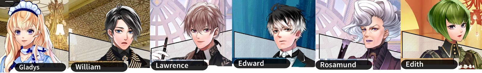 Mi opinión (cuidado, SPOILERS): me sorprendió bastante la organización de la pantalla y cómo salían los personajes, pero es curioso e interesante. Los fondos están muy bien (a diferencia del juego anterior) y los personajes tienen muchas expresiones diferentes. La madre de Gladys era la hermana menor de Rosamund y Gordon (el tío muerto), pero huyó de la casa para estar con el padre de Gladys. Ella no sabía que era de esta familia rica hasta que William y Lawrence van a por ella y le enseñan fotos. Rosamund no está nada contenta de su aparición y de que su hermano le haya dejado todo, como tampoco de que su hermana se fuera de la casa, por lo que la cree una vergüenza. Todos los mayordomos son muy diferentes entre ellos, siendo William el más tranquilo y servicial (es quien le enseña modales y baile), Edward el más callado y menos sociable (se encarga de un invernadero y tareas varias) y Lawrence siempre está señalando los fallos de la protagonista y tiene respuesta para todo, por lo que Gladys está diciéndole siempre que es muy grosero con ella (le enseña historia y conversación). Edith por otro lado, se toma muy en serio su trabajo y no da concesiones a Gladys a la hora de hacer las cosas. Gladys es una chica fuerte que no dejará que nadie la pisotee y dirá lo que piensa, sin importar la alta alcurnia de su interlocutor, así que estoy bastante contenta con ella.