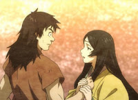 Del anime "Angolmois" de 2018. Al principio parece que no pegarán ni con cola o que no se fijarán en el otro, siendo él un samurai que ha perdido todo y ha acabado en la isla a la fuerza y ella la princesa de una dinastía casi acabada... De hecho, ella lo "utiliza" para que los proteja al principio... pero luego vemos cómo se encapricha de él y hasta comienza a robarle besos cuando está dormido XD Se nota que ella no ha tenido contacto romántico con otros hombres y, aunque estoy segura de que Jinzaburou sabía de esos "robos", la dejaba hacer igualmente... El caso es que él está demasiado centrado en defender la isla y sus habitantes y no se aprecia realmente que vaya a devolver esos sentimientos... Así que un shippeo con cierta base, pero muchas interrogaciones a futuro XD Aún así, me gustaba la pareja que podían hacer, sobretodo por devolverle algo de esperanza a Jinzaburou.